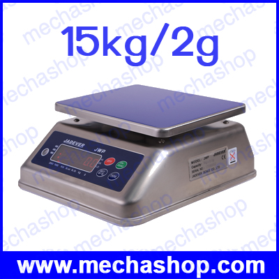 เครื่องชั่งกันน้ำ เครื่องชั่งสแตนเลส 15kg ความละเอียด 2g จานชั่งเป็นสแตนเลส ขนาด 230x190mm  ยี่ห้อ JADEVER รุ่น JWP กันน้ำได้ ไต้หวัน (ผ่านการตรวจรับรอง)
