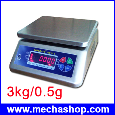 เครื่องชั่งกันน้ำ เครื่องชั่งสแตนเลส เครื่องชั่งแบบกันน้ำ ตาชั่งกันน้ำ 3Kg ความละเอียด 0.5g Waterproof Digital Scale New 3000g/0.5G โครงสแตนเลส (ผ่านการตรวจรับรอง)