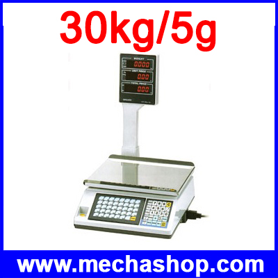 เครื่องชั่งคำนวณราคา ขนาดน้ำหนักชั่ง30kg ความละเอียด5g หน้าจอแสดงผลLED 3หน้าจอ (โปรแกรมเครื่องชั่ง หักน้ำหนักภาชนะ, คำนวณราคา, ทอนเงิน)