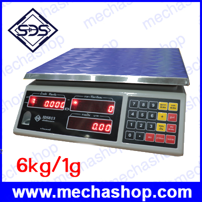 เครื่องชั่งคำนวณราคา เครื่องชั่งน้ำหนัก เครื่องชั่งตั้งโต๊ะ 6kg ความละเอียด 1g หน้าจอแสดงผล LED ยี่ห้อ SDS รุ่น IDS813E เครื่องชั่งคำนวณราคา เมนูภาษาไทย (ผ่านการตรวจรับรอง)